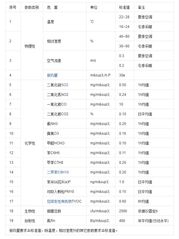 室內空氣質量標準 ( GB/T 18883-2002 2003-03-01 實施 ) 為保護人體健康,預防和控制 室內空氣污染 ,制定本標準。本標準規定了 室內空氣質量參數 及檢驗方法。 本標準適用于住宅和辦公建筑物,其它室內環境可參照本標準執行。 北京維諾康環境科技有限公司